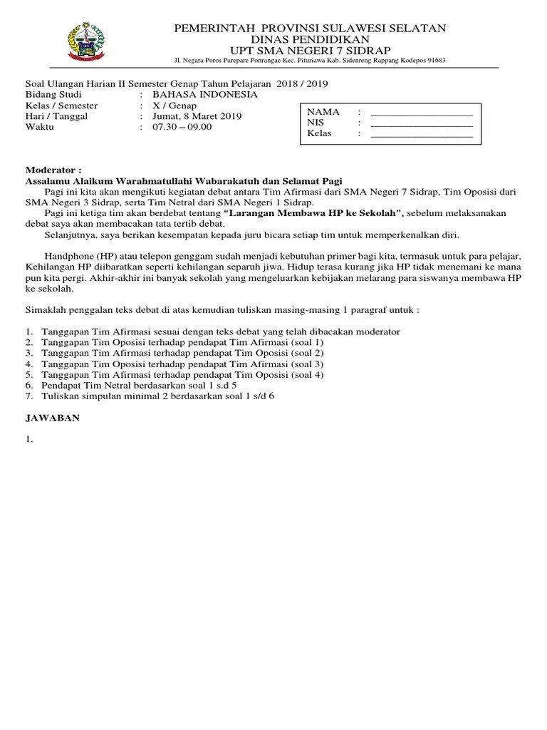Pertanyaan debat tentang membawa hp ke sekolah, contoh pertanyaan.