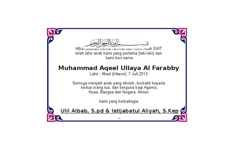 Contoh Kartu Aqiqah / 3 / Berharap postingan contoh kartu ucapan aqiqah anak laki laki diatas bisa berguna buat kalian.