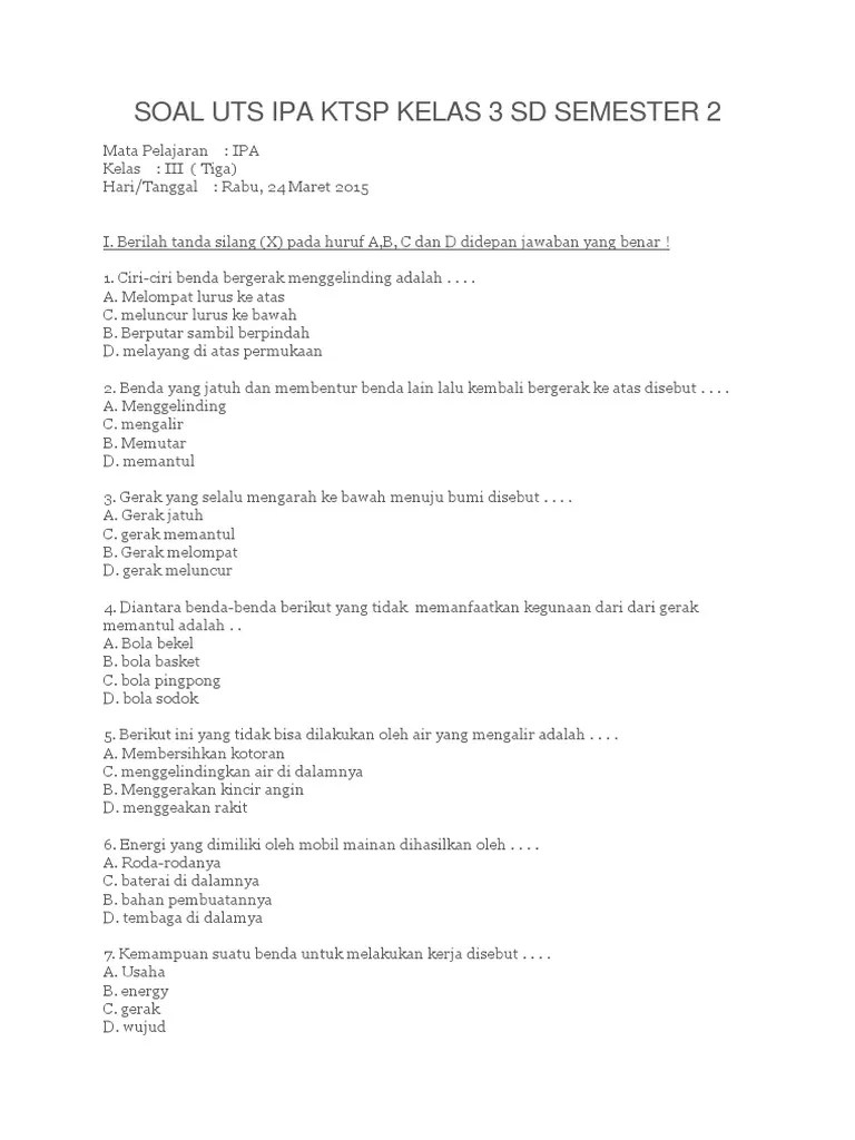 Kumpulan soal tematik kelas 3 sd/mi semester 1 kurikulum 2013 download soal . Ċ, soal uts ipa semester 2.pdf. Net contoh soal uts ipa kelas 1 sd semester 2 soal uas ipa kelas 2 sd. 1, 13 mar 2016 08.38, kurnia septa. Inilah pembahasan soal dan jawaban latihan uas, ukk dan pat untuk siswa kelas 3 sd / mi materi ilmu pengetahuan alam (ipa)